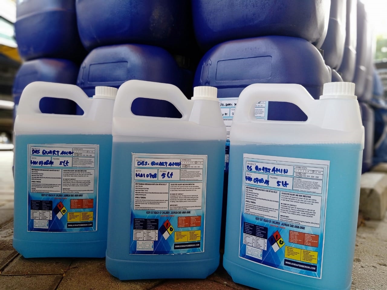 PT Hikam Abadi Indonesia menyediakan stock dsinfectan 5 liter untuk memenuhi kebutuhan anda. Desinfectan kami bisa aman untuk digunakan pada manusia. Dapat digunakan untuk bagian luar tubuh ( bilik disinfektan) . Peralatan, lantai, ruangan, meja, kursi , sofa tanpa merusak bahan kulit dan kain, tombol lift, eskalator, kayu tangga, pintu, dan semua peralatan yg sering tersentuh umum.